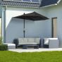 Need a garden parasol for the seasons head, but limited on space? Go for this half parasol. The half-cut size means it will stand against your wall without any gaps, creating safe shade whether it's against a wall, window or fence. Yet, the extra-long canopy creates more shade than standard, keeping everyone safely protected when relaxing in the sun. Features a crank handle to open and close effortlessly, with a base included to stand in place (just ensure you use weights).