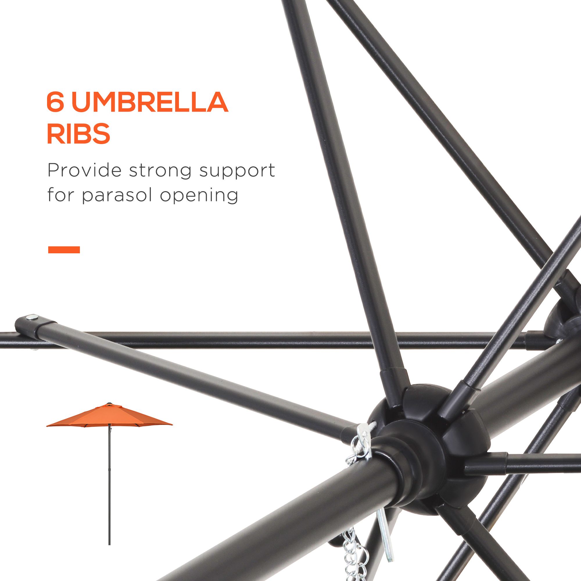 2m Patio Parasols Umbrellas, Outdoor Sun Shade with 6 Sturdy Ribs for Balcony, Bench, Garden, Orange