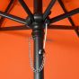 - Aluminium frame to keep parasol upright, connected to the canopy with six steel ribs