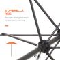 - ALUMINIUM POLE: Powder coated for patio parasol's extra strength, a strong core to stand steadily and upright. Six ribs connect to the canopy for extra strength.