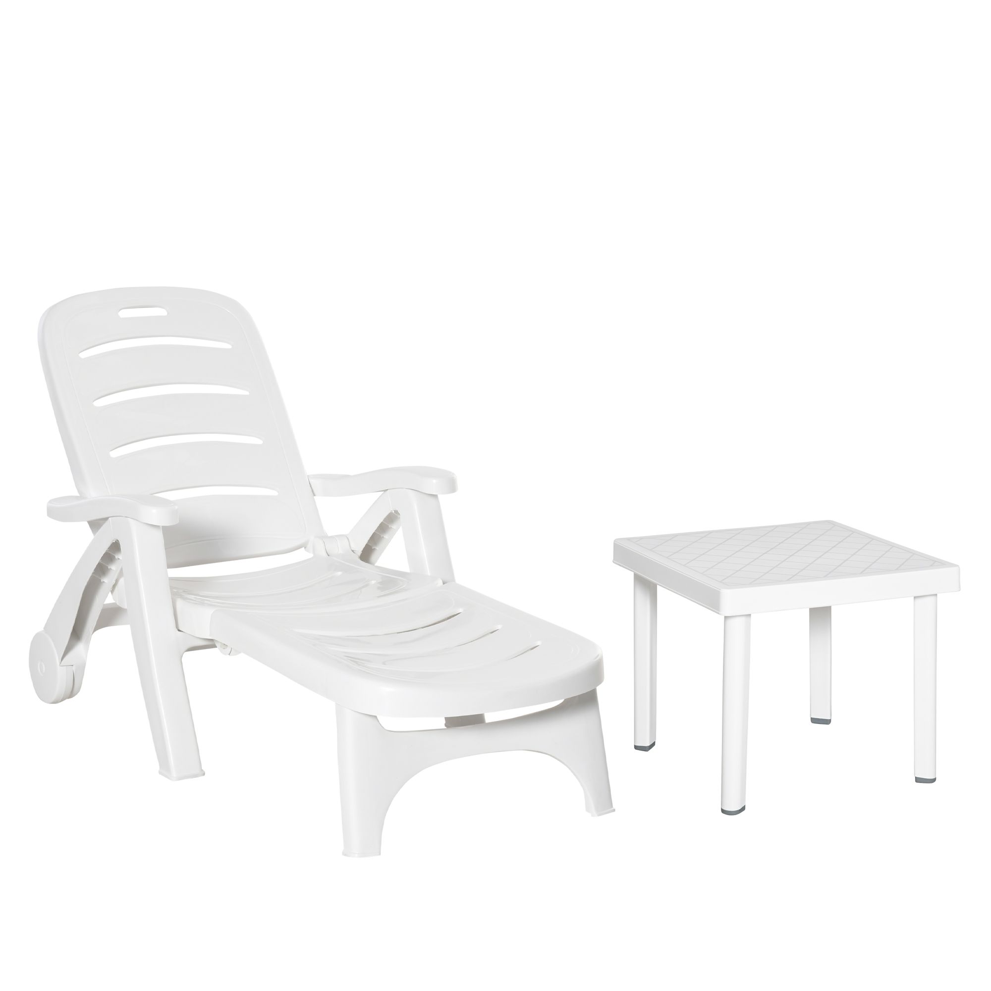 2pcs Garden Furniture Set Outdoor Furniture Set Dining Table, 1 Lounge Chair and 1 Garden Side Table White