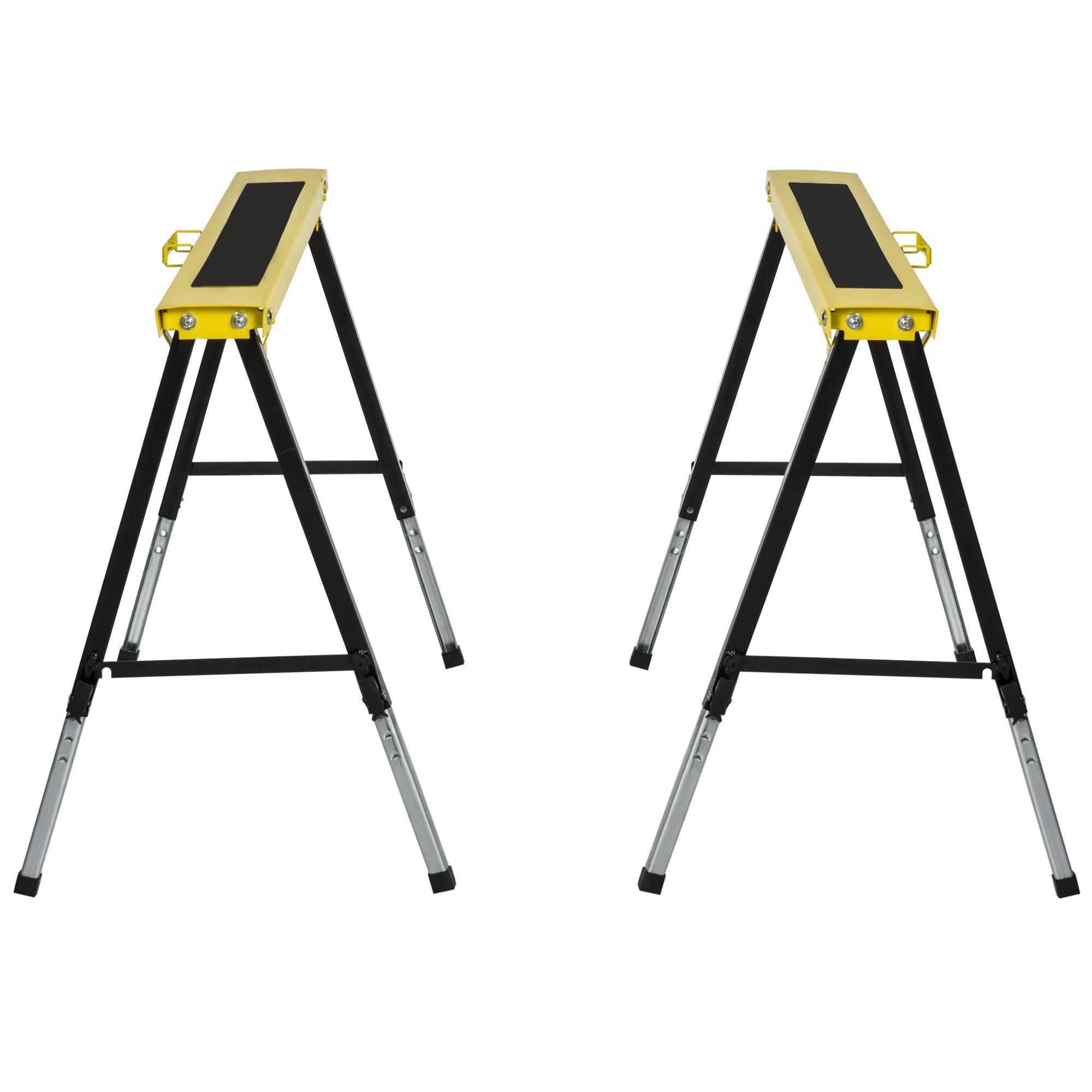 - SET OF TWO: 2-piece saw horse with steel construction provides a stable platform when sawing wood. The A-shaped frame makes it more stable. Ideal for cutting wood, suitable for home, moving, warehouse.