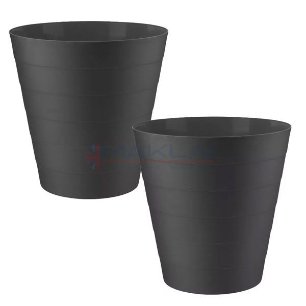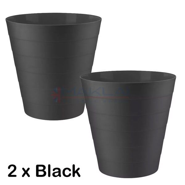 2x Black Small Waste Paper Basket - 6L Round Plastic Dust Bin