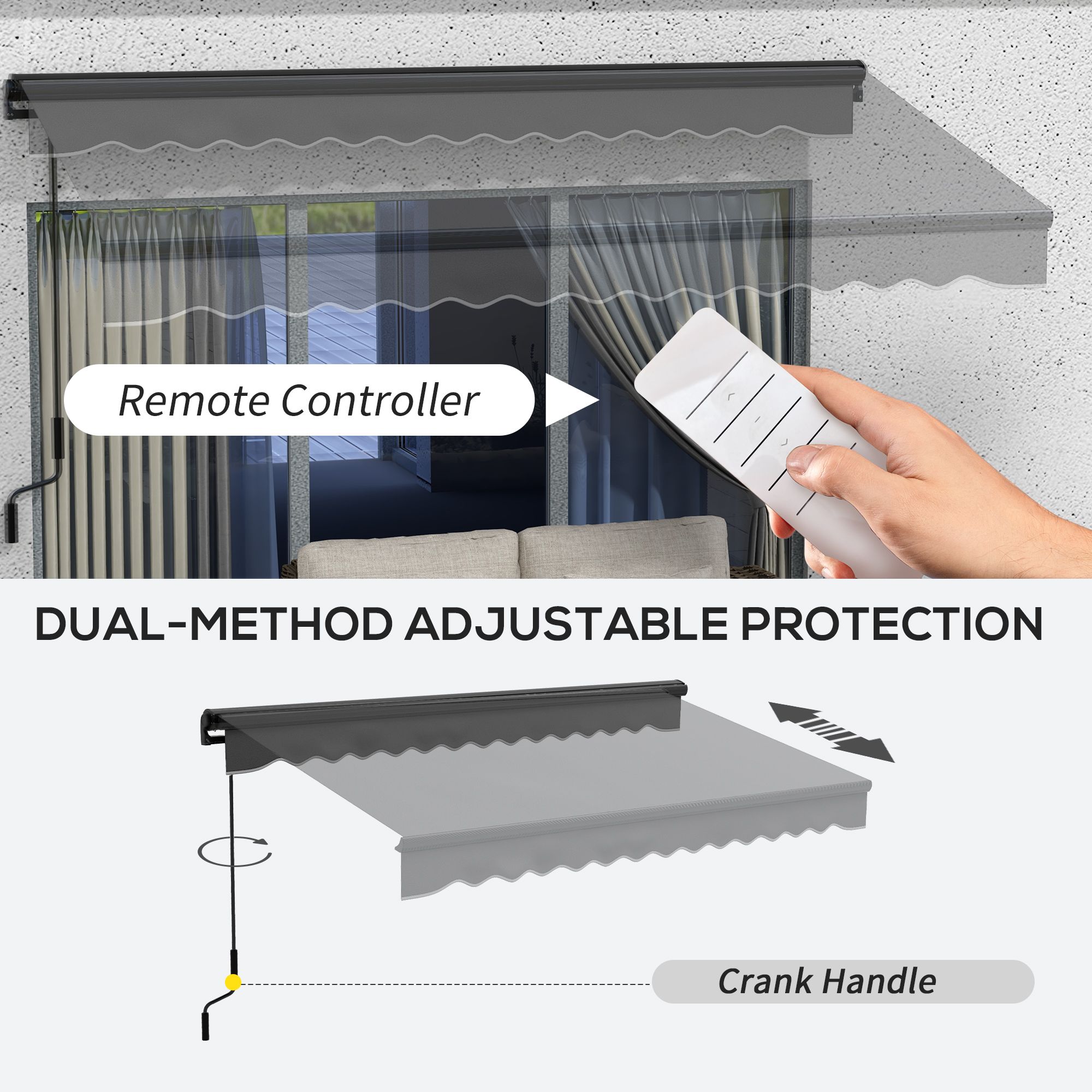 3.5 x 2.5m Aluminium Frame Electric Awning, Retractable Awning Sun Canopies for Patio Door Window, Dark Grey
