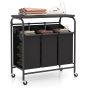 3-Bag Cart Heavy Duty Laundry Sorter Hamper with Foldable Ironing Board-Black and Grey