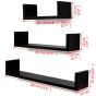 3 Black MDF U-shaped Floating Wall Display Shelves Book/DVD Storage