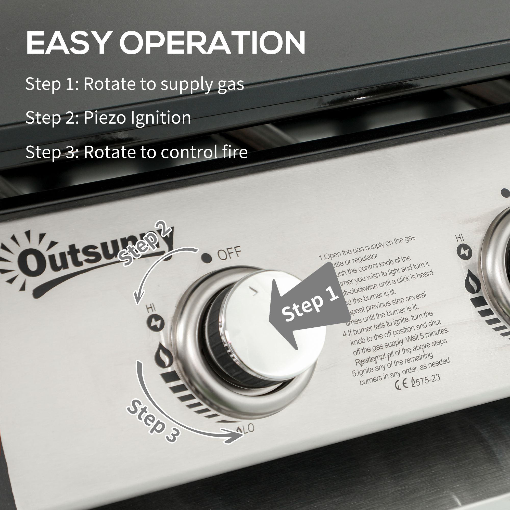 3 Burner Gas Plancha BBQ Grill with Lid, Black