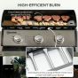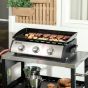 A cooking hotplate you can take anywhere with you: this Outsunny BBQ plancha with lid is a good choice for the times away you want your own hot food. A three burner design, with three individual cooking areas means you can cook three times the food - cook a varied meal if you want. Each burner has 10000 BTU/7.5kw power - a good amount of heat. The non-stick plate makes it easy to cook and clean. Completed with a grease-collection box to clean the grease easily.