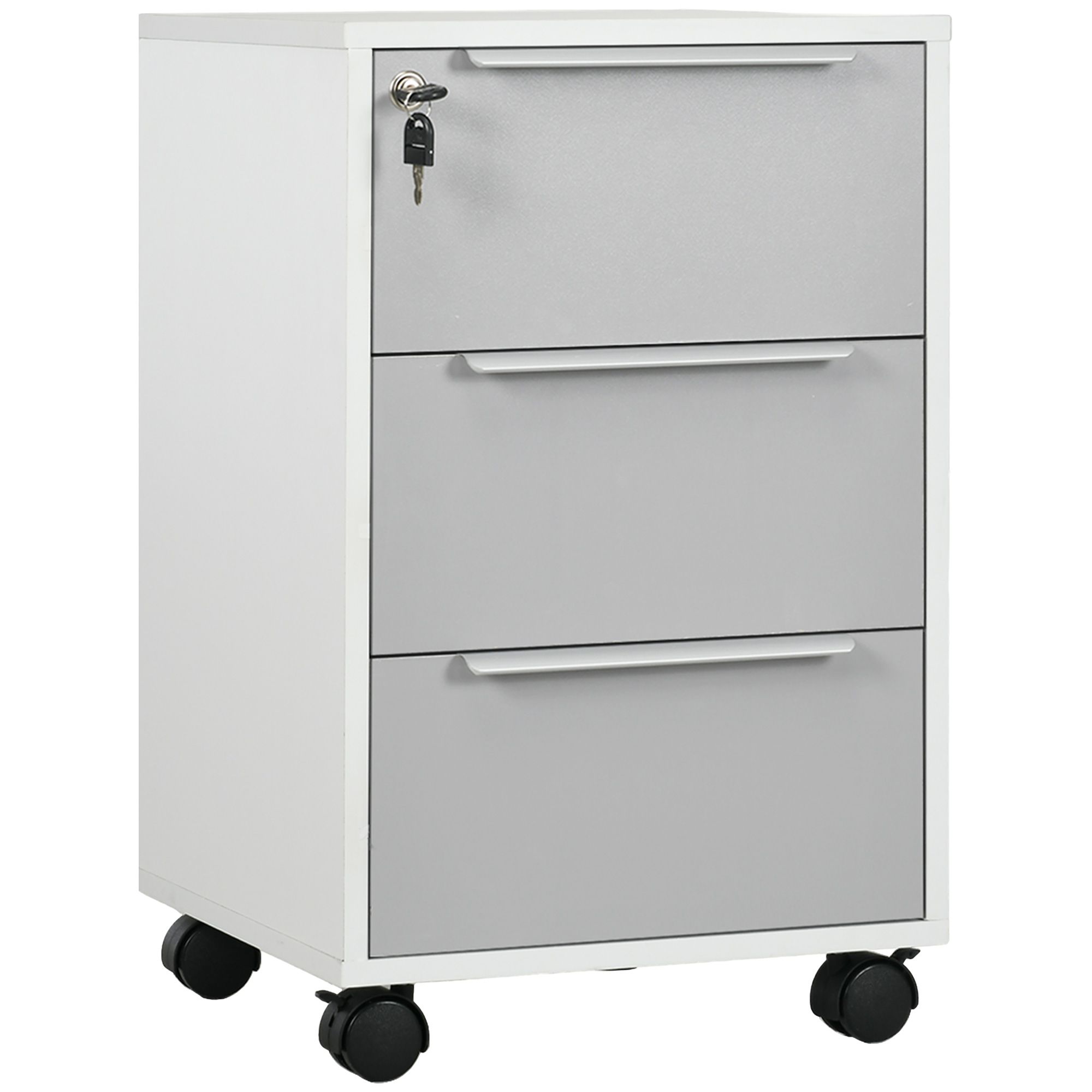 3-Drawer Locking File Cabinet Mobile Chest of Drawers Side Table on Wheels for Home Office, Bedroom and Living room