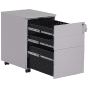 Keep your home office clean and uncluttered with this industrial cabinet. Equipped with 3 drawers of various sizes, it allows you to store away all your documents, reports and other important things. Storage is lockable with a key, so you don't have to worry about your papers. The whole unit also comes with a set of castors, so you can move the cabinet with ease whenever you want. Made out of steel, the piece is also very durable and hard to damage. Details: Color: Grey. Main material: Steel. Additional material: Synthetic Material. Weight: 20 Assembly: Does Not Require Assembly Legs Height: 5