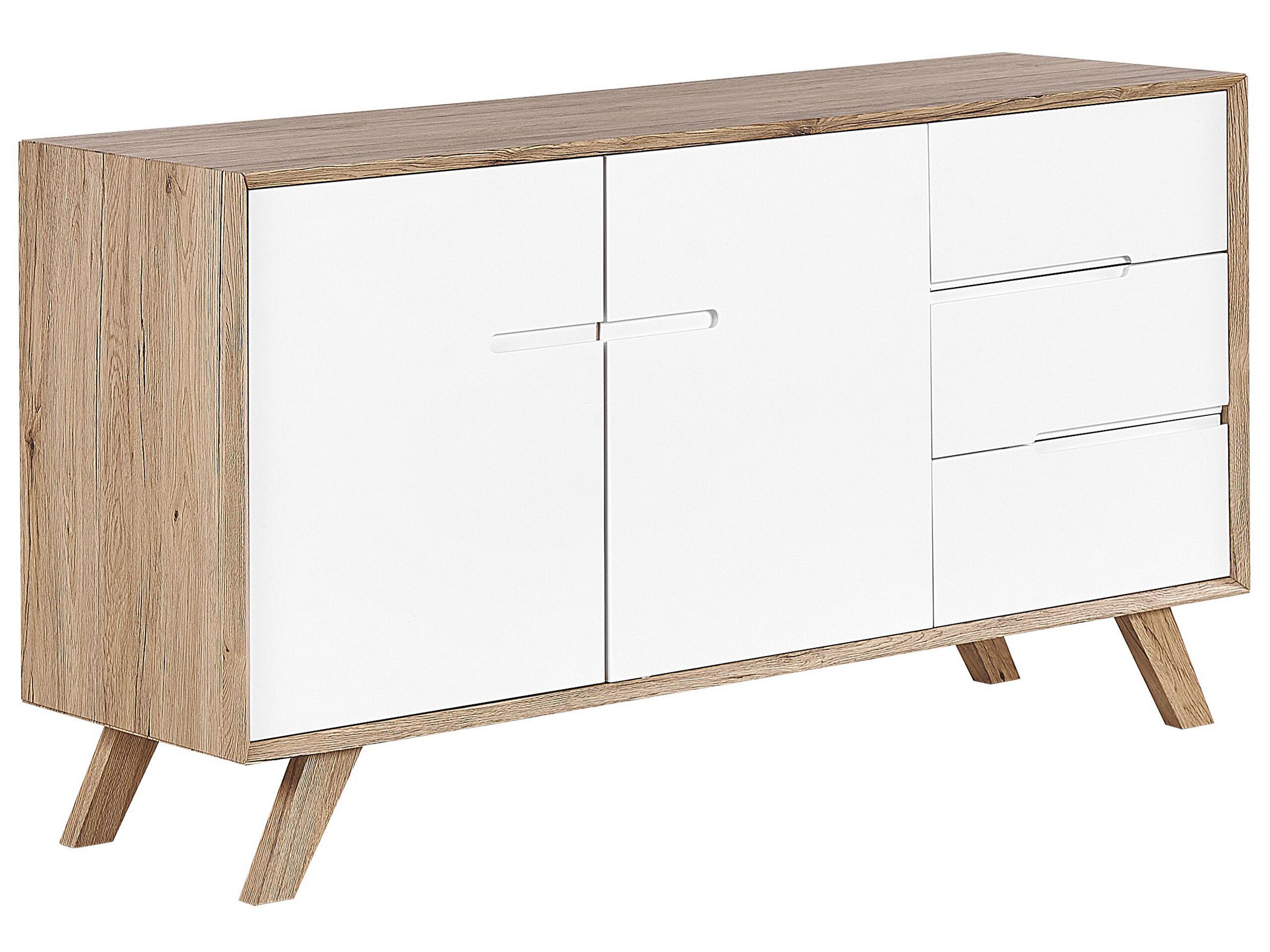 3 Drawer Sideboard White and Light Wood FORESTER