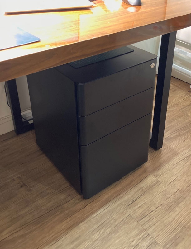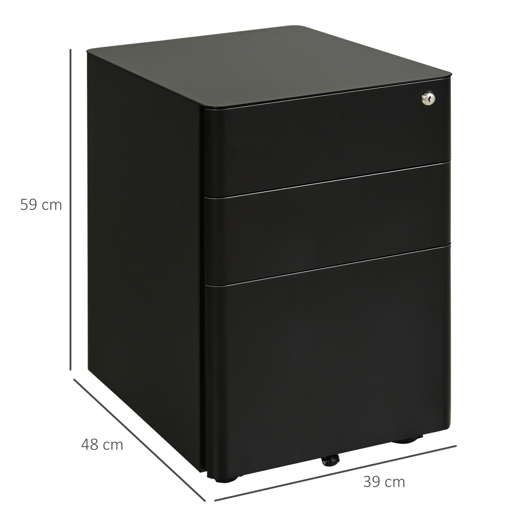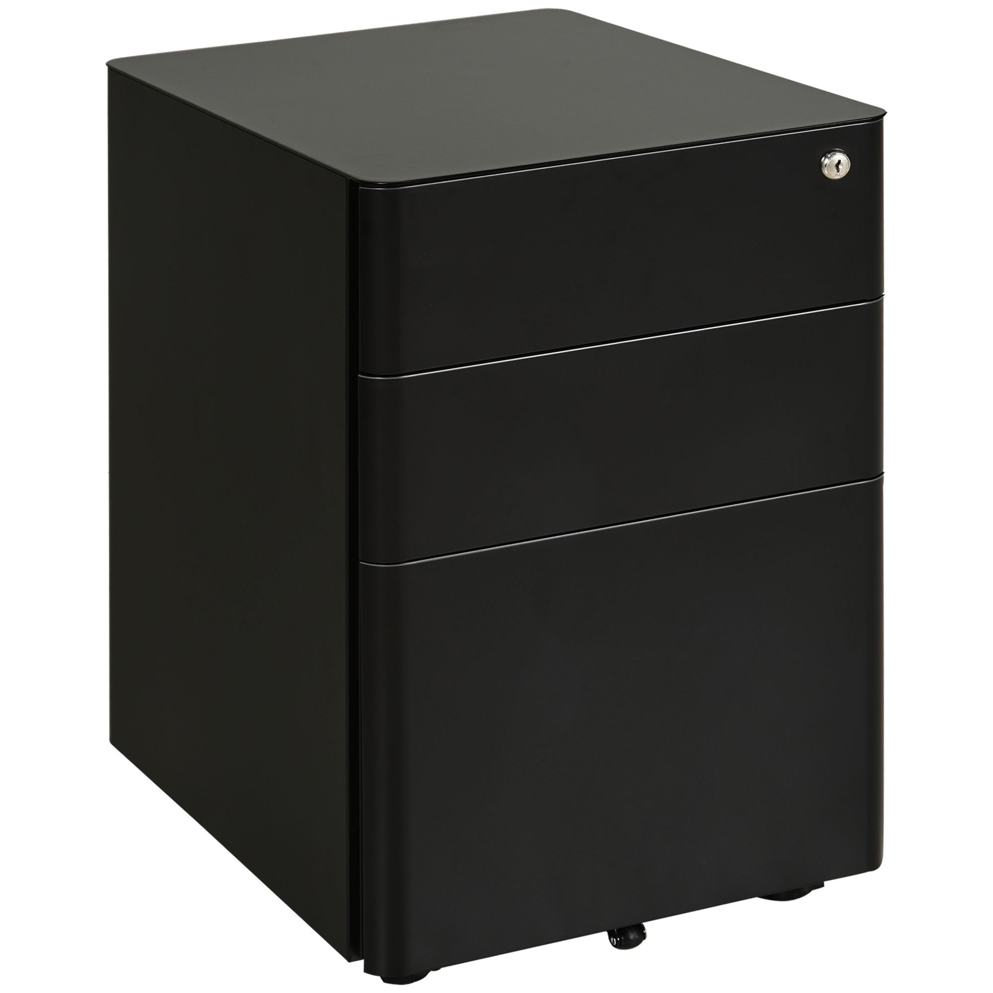 Keep your important paperwork organised and with this metal filing cabinet from. Spacious in size, it features two small drawers and a large bottom drawer - perfect for all your paperwork and other office supplies. On the bottom, four omni-direction wheels are placed for you to move the unit around easily, and it is finished with a lock to keep everything safely secure when you're away.