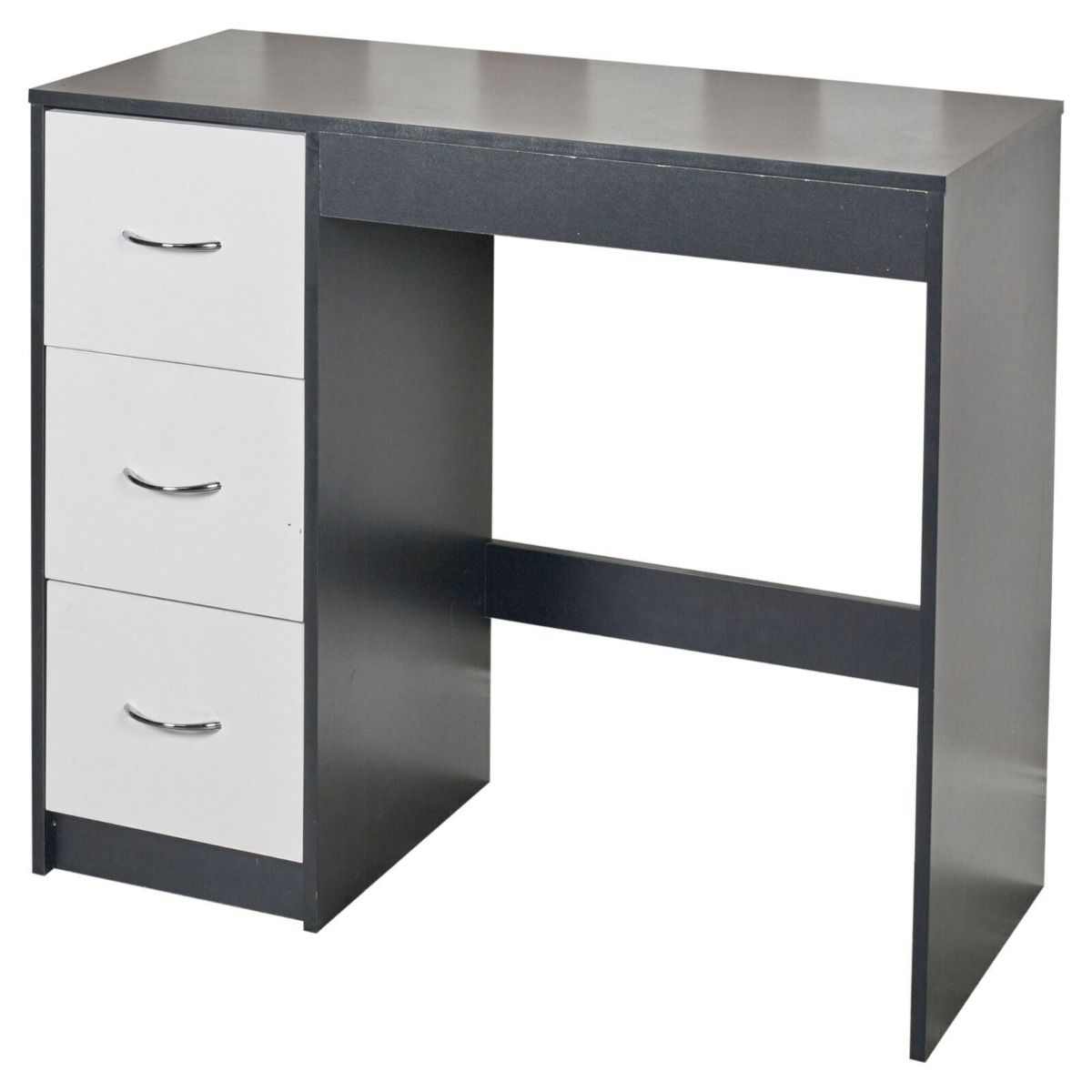 3 Drawer Wood Dressing Jewellery Work Desk - Black Carcass with White Drawers
