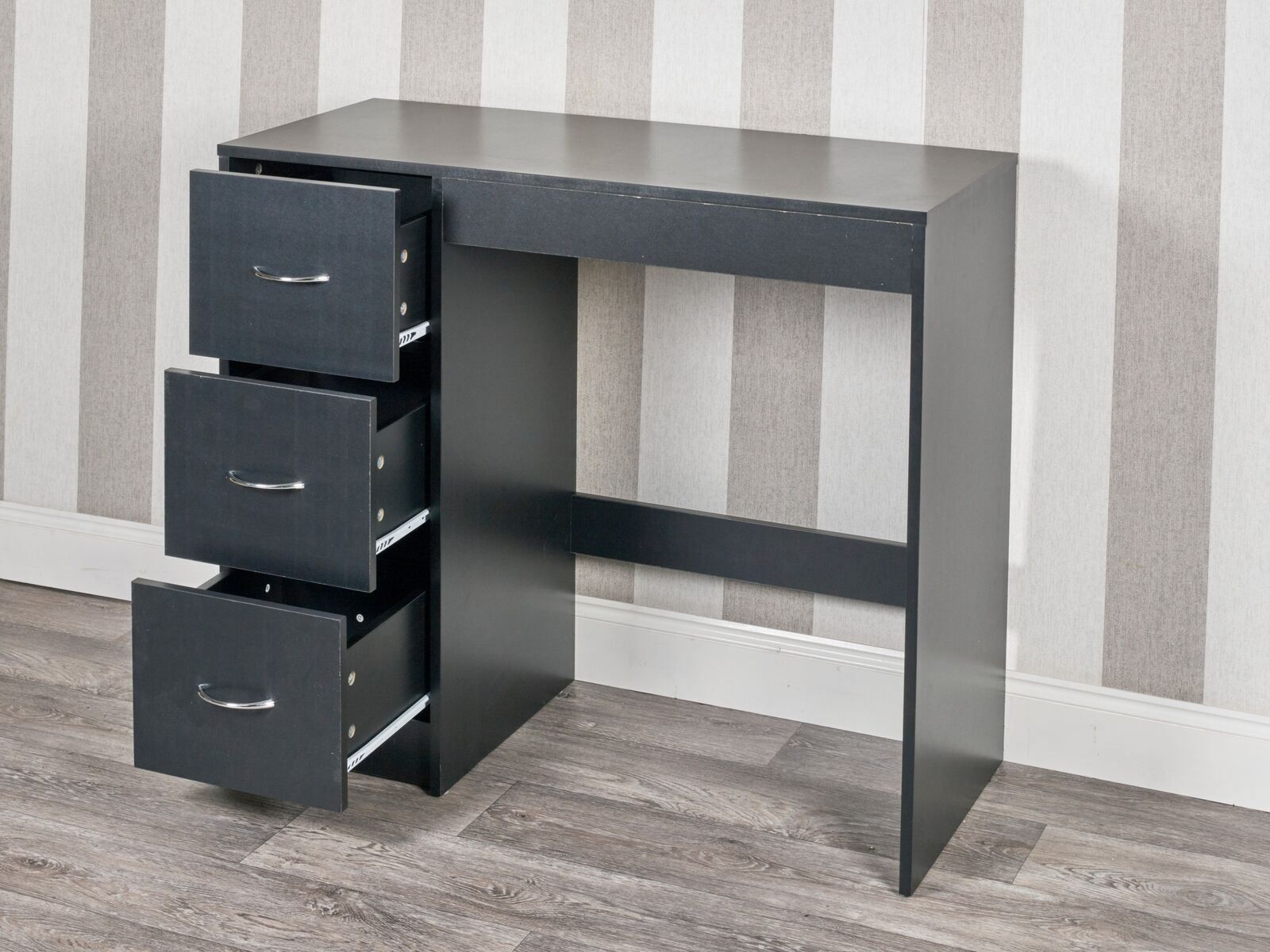 3 Drawer Wooden Computer Desk - Black Carcass with Black Drawers