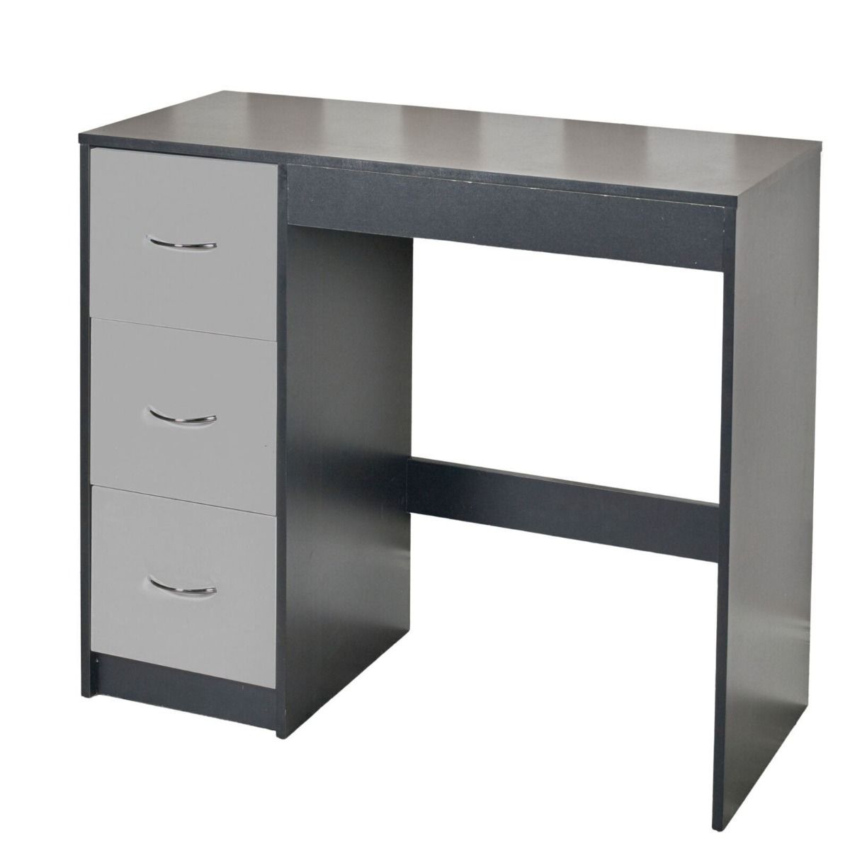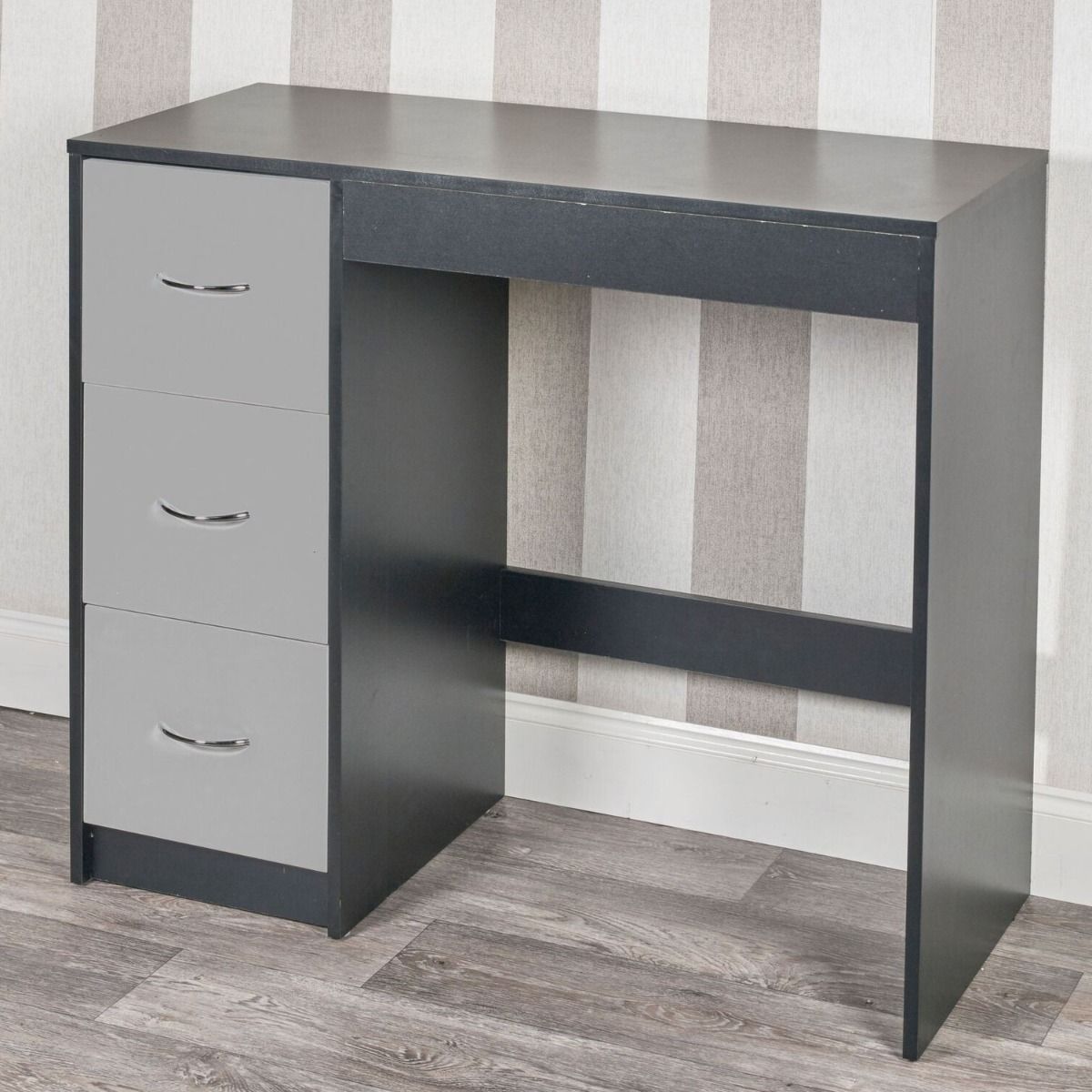 3 Drawer Wooden Computer Desk - Black Carcass with Grey Drawers