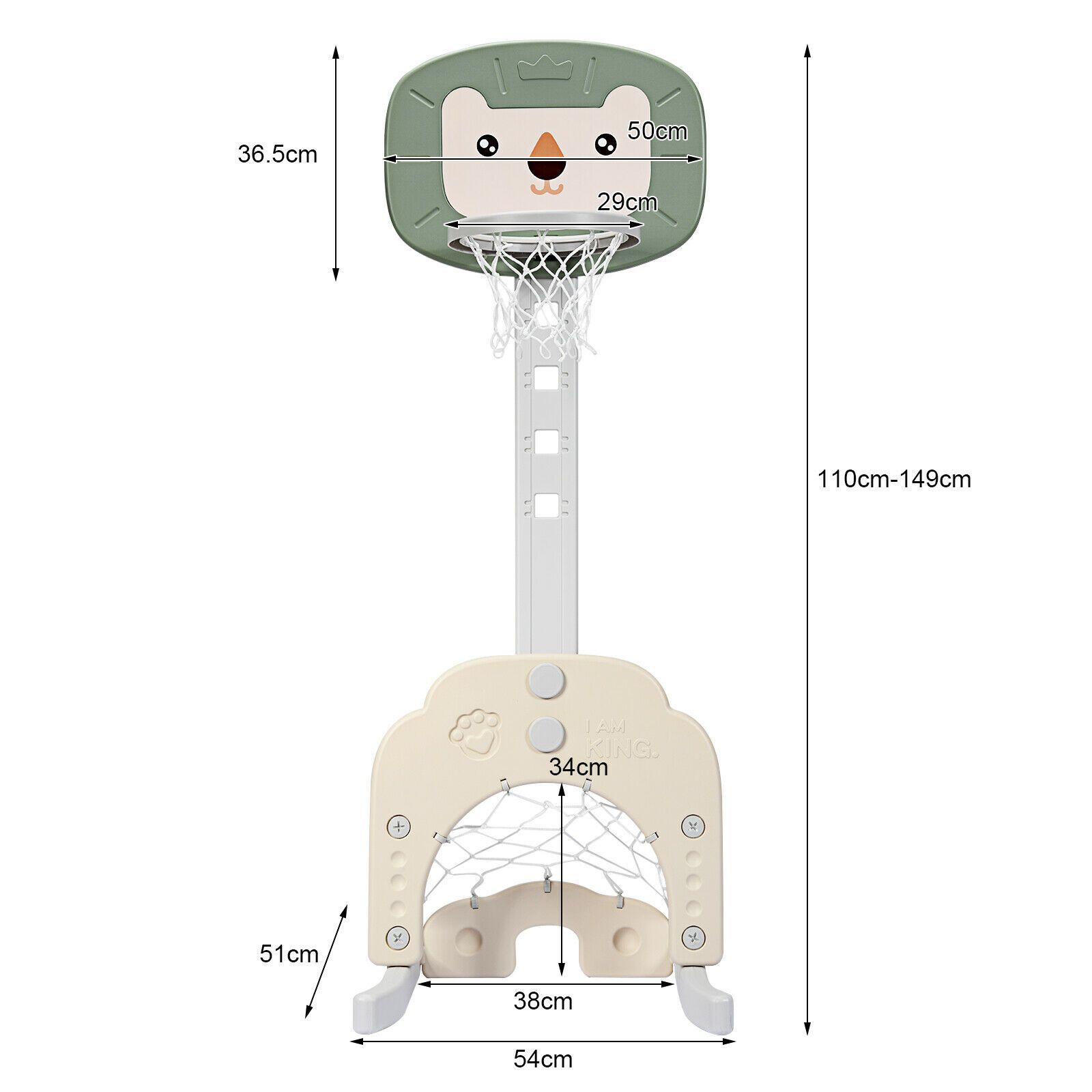 3-in-1 Basketball Hoop Set Stand 5 Adjustable Height