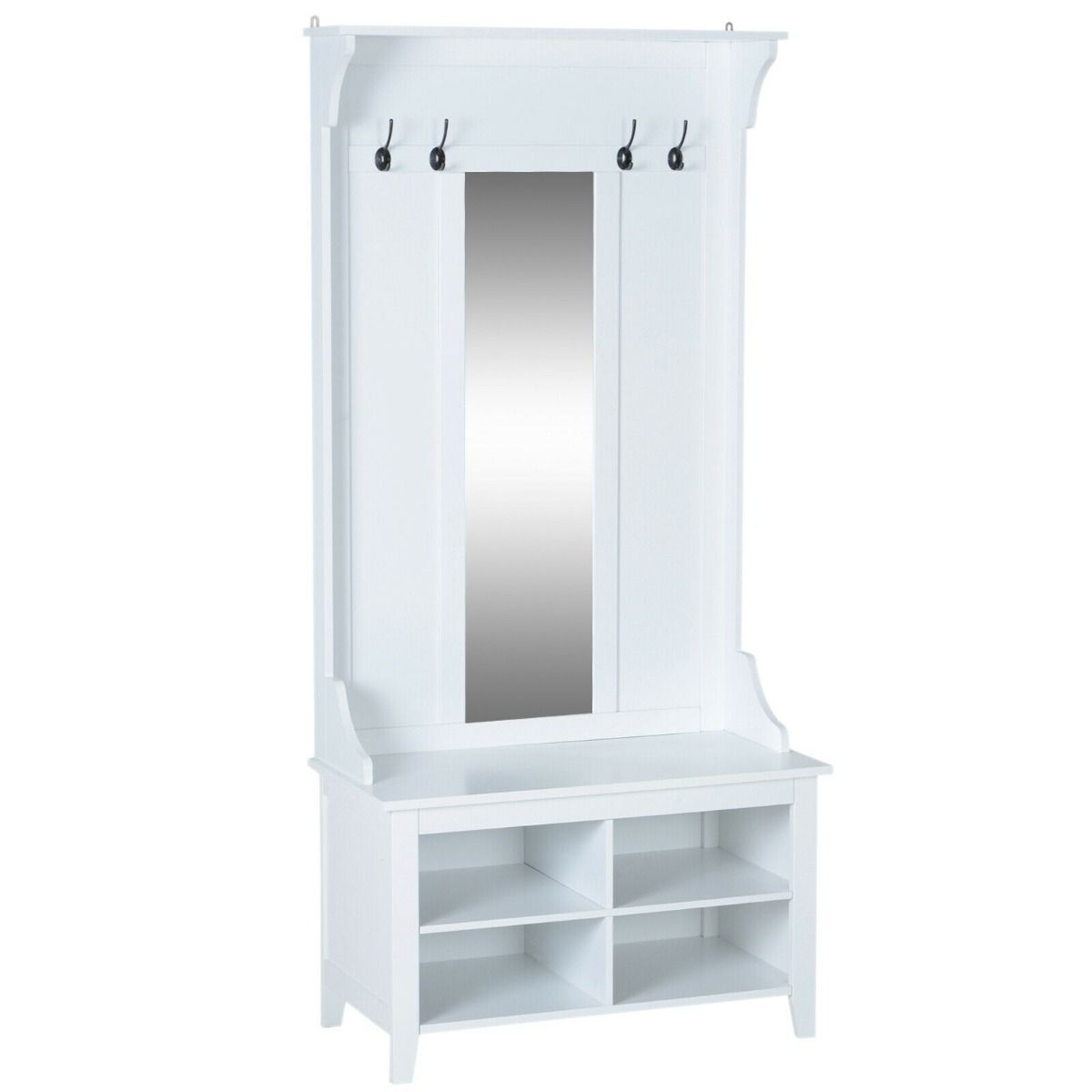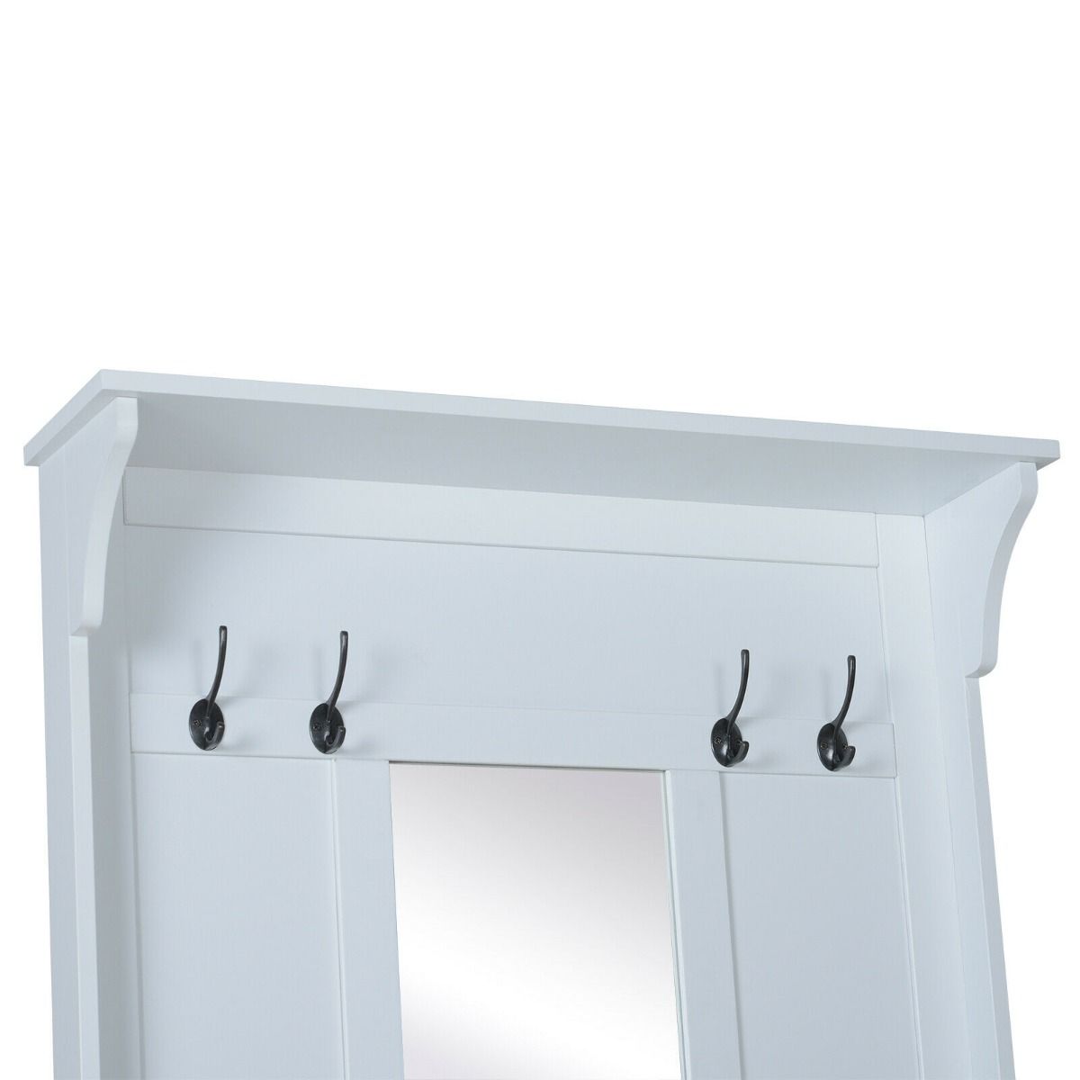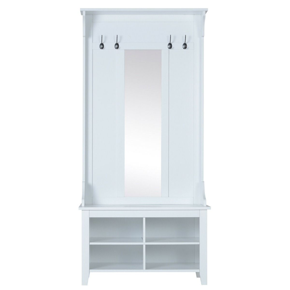 3 in 1 Design Shoe Storage, Mirror Cabinet Coat Rack with 4 Hooks - White