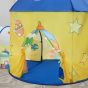 Colour: Yellow, BlueMaterial: Polyester Fabric, Mesh Fabric, Fibreglass RodSize of the Ball Pool: 115 x 110 x 36 cm (L x W x H)Height Between Floor and Basketball Hoop: 75 cmTunnel Size: 60 x 107 x 52 cm (L x W x H)Tent Size: 100 x 135 cm (Dia. x H)