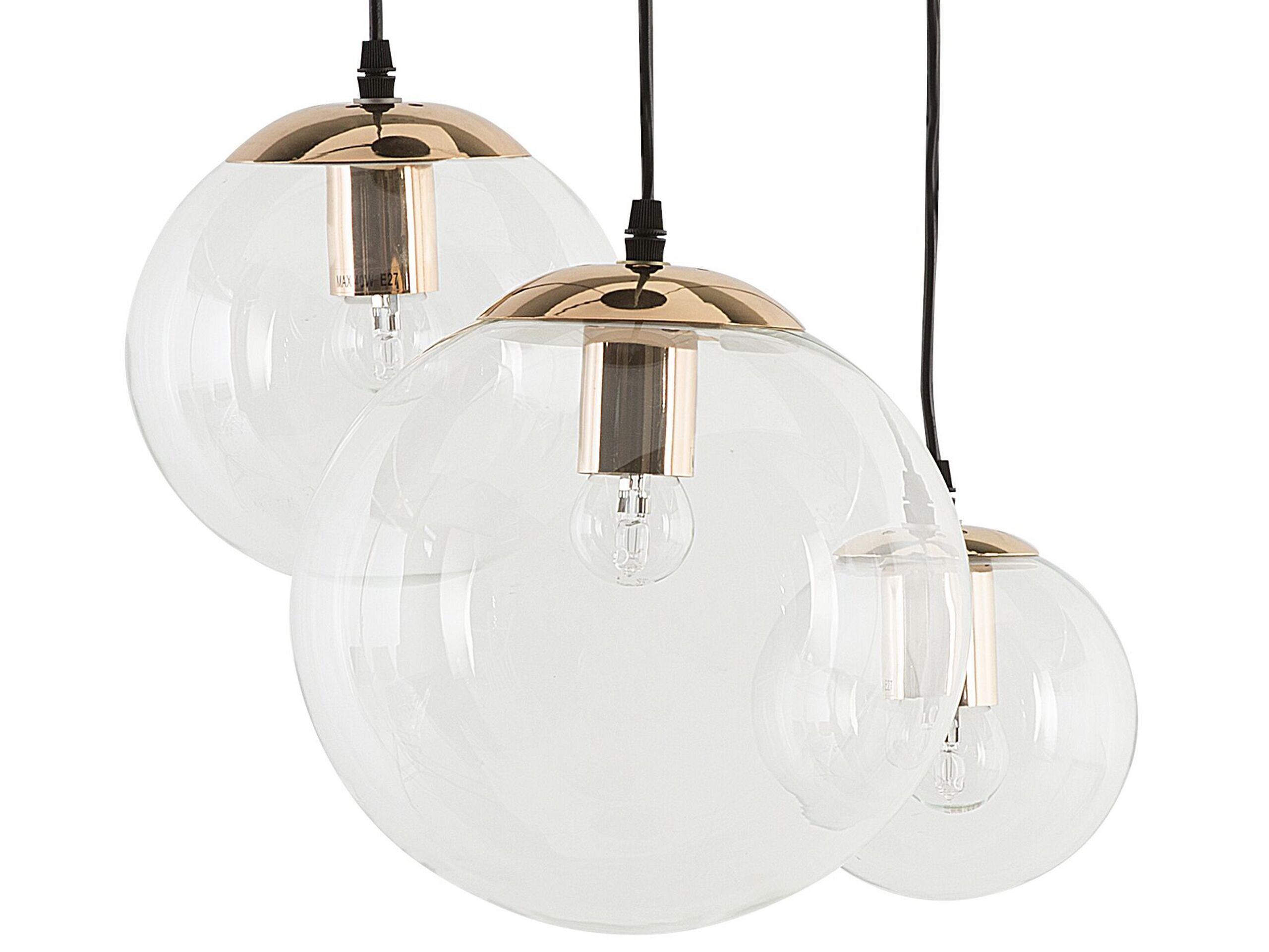 This triple cluster pendant is an ideal piece for highlighting a dining area, a kitchen island or a hallway. It’s trendy design and upscale look with clear glass spherical shades topped with golden caps make it a perfect match for any interior in modern or glam decor. Upgrade the fixture with feature bulbs or use colourful ones to set the mood in the room. Details: Color: Gold, Transparent. Main material: Glass. Additional material: Synthetic Material, PVC. Weight: 3 Assembly: Requires Installation and Assembly