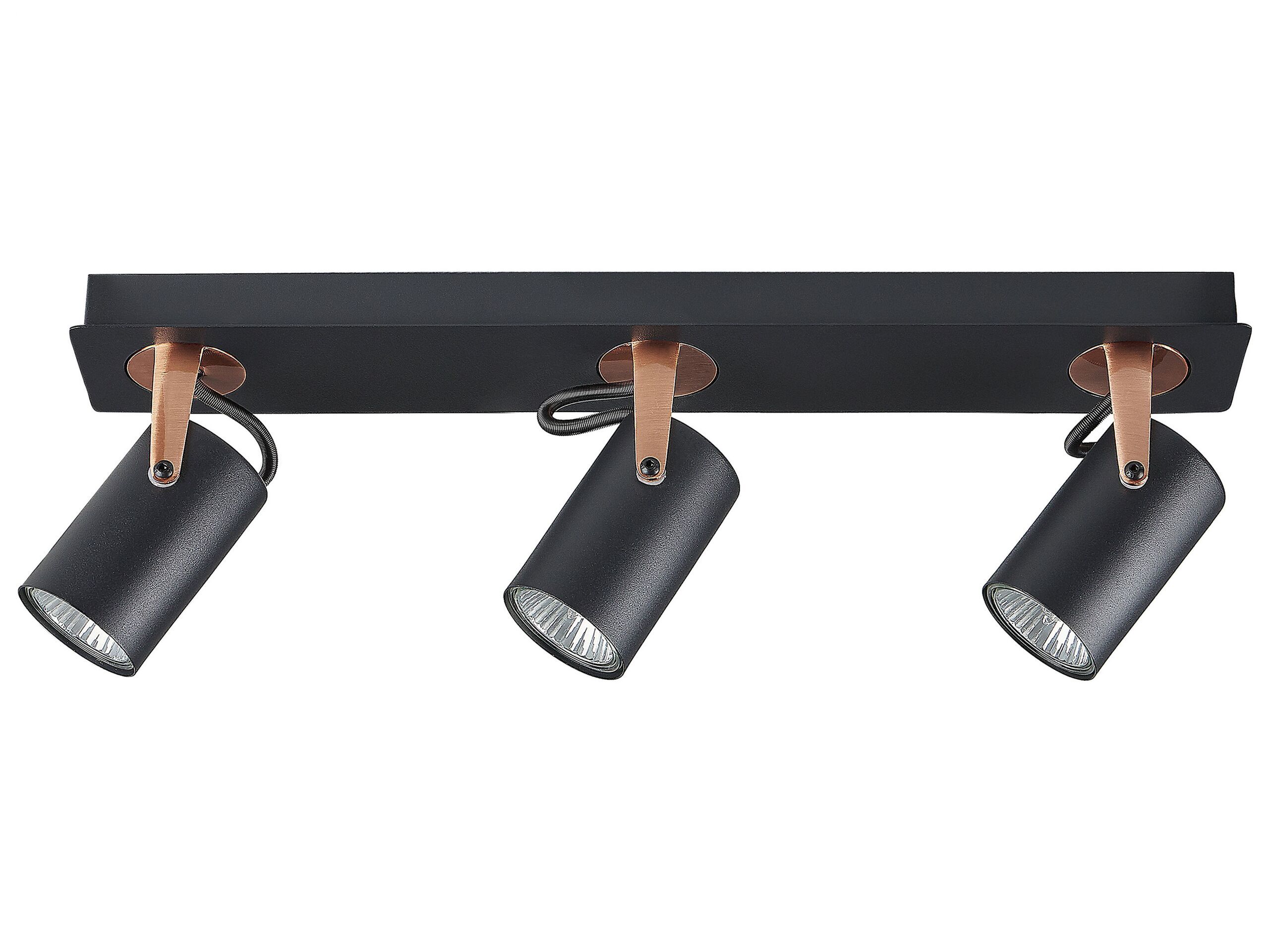 This black ceiling lamp will be a stylish and functional element of any living room or bedroom. Thanks to its easy-to-use mechanism, the angle of the shades can be easily adjusted in any direction, providing even distribution of light and making it a great task lamp. Made of metal with black and copper elements, the lamp is perfect for both industrial inspired decor and more traditional interiors. Details: Color: Black, Copper. Main material: Metal. Weight: 0.9 Assembly: Requires Installation
