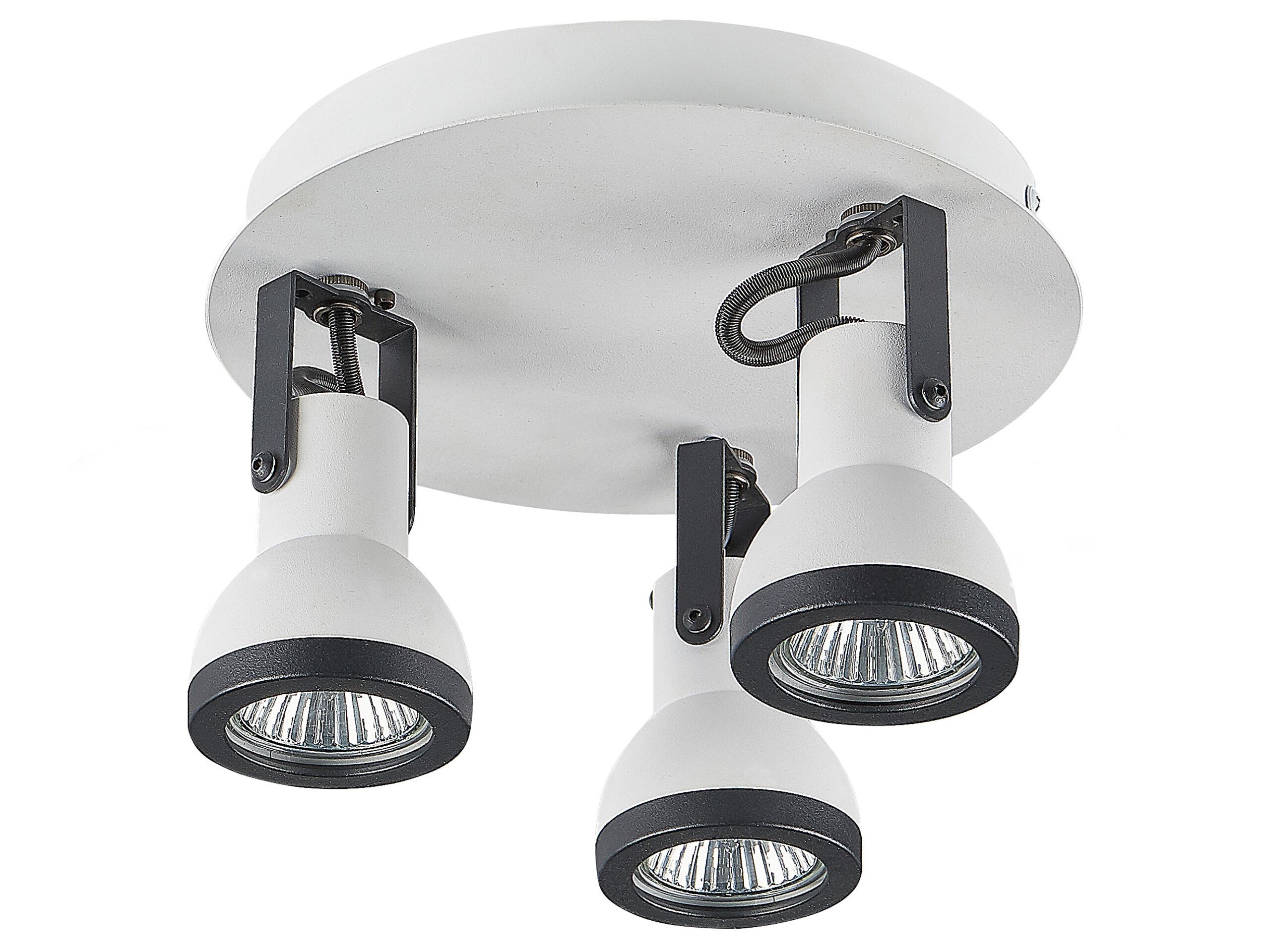 Hang this lamp on your ceiling to light up your living space or bedroom. The round rail features 3 spotlights that can point the light in the direction you select, so you'll be able to use this as a reading or task light. The piece is made out of durable iron, which makes them easy-care and long-lasting. White colour combined with black parts makes the lamp fit any modern, industrial decor styles. Details: Color: White, Black. Main material: Iron. Weight: 1 Assembly: Requires Installation