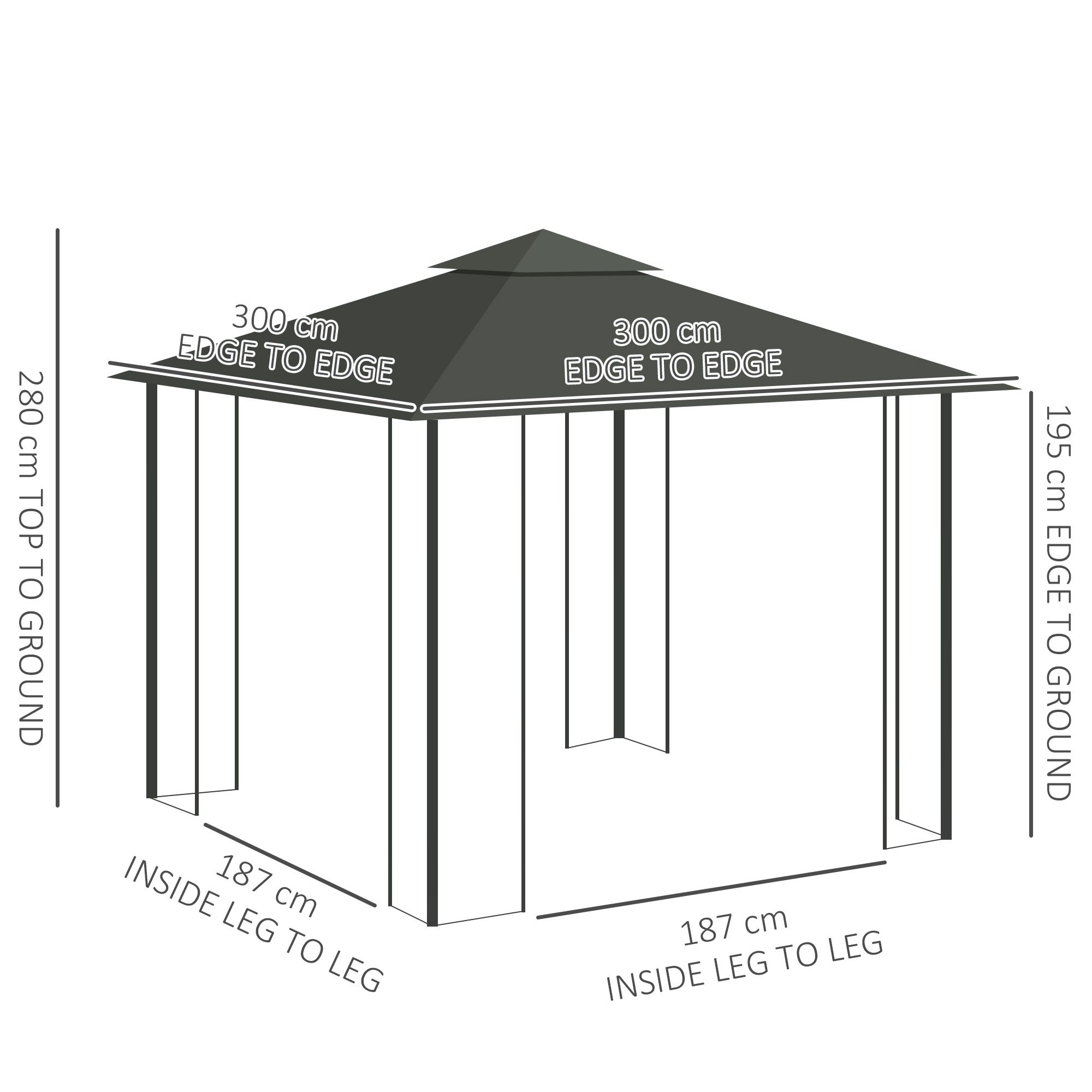 3(m) x 3(m) Double Roof Outdoor Garden Gazebo Canopy Shelter with Netting, Solid Steel Frame, Light Grey