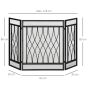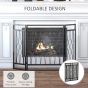 3-Panel Folding Fireplace Screen, Metal Mesh Fire Spark Guard, 126L x 3W x 80H cm-Black
