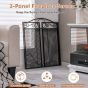 3-Panel Folding Metal Fireplace Screen with Leaves Decoration