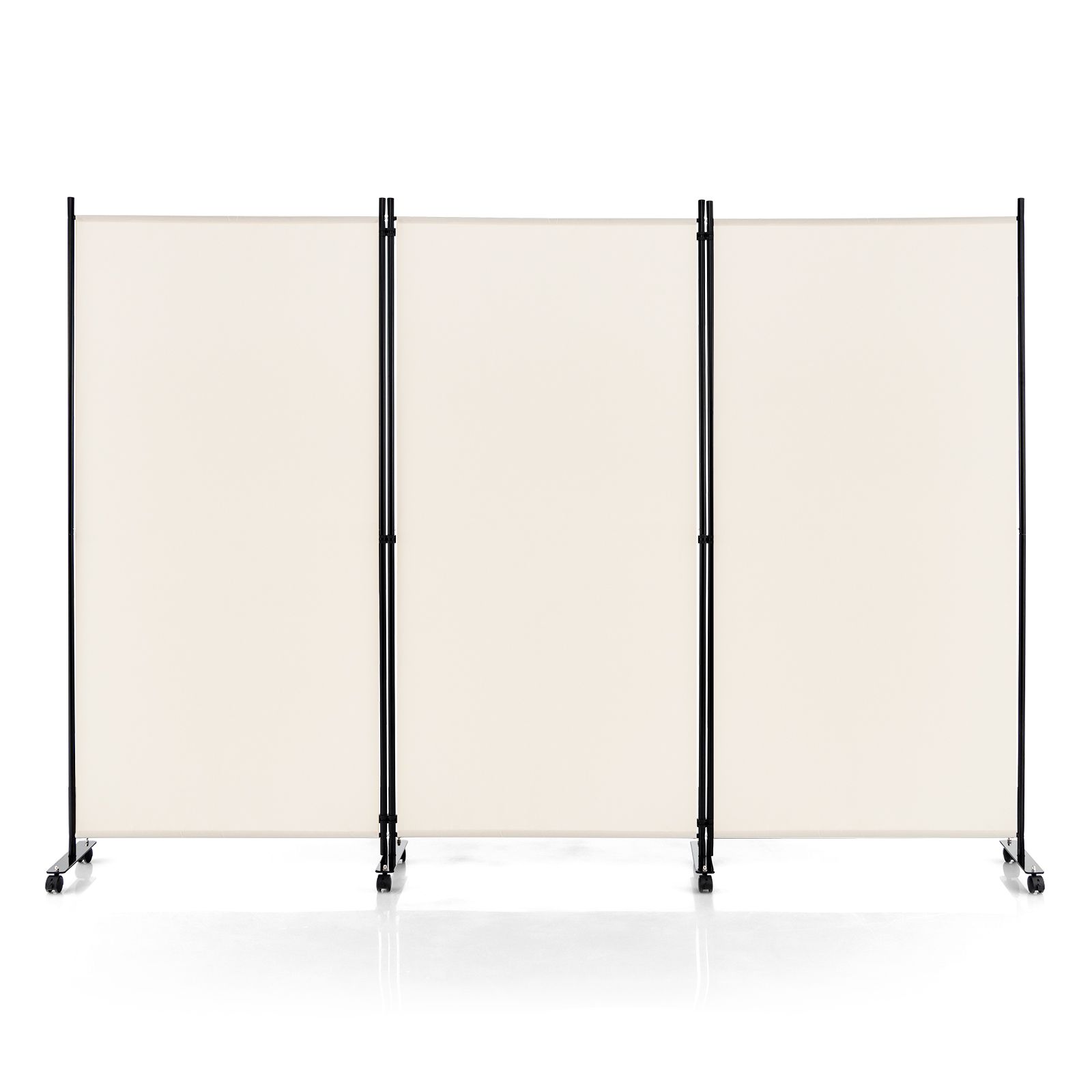 3-Panel Folding Room Divider with Wheels for Living Room Bedroom-Beige