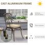 3 Pcs Cast Aluminium Garden Bistro Set with Parasol Hole, Coffee Table, and Cushions - Bronze