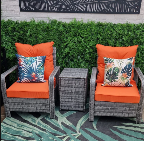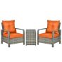 3 pcs PE Rattan Wicker Garden Furniture Patio Bistro Set Weave Conservatory Sofa Storage Table and Chairs Set Orange Cushion, Mixed Grey
