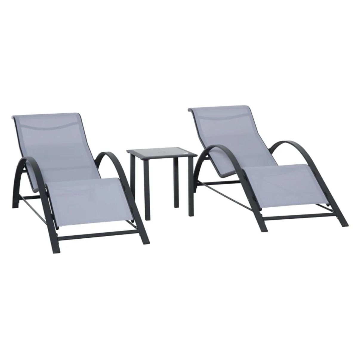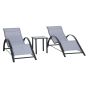 3 Pcs Textilene Fabric Garden Sun Lounge Set with Table - Light Grey