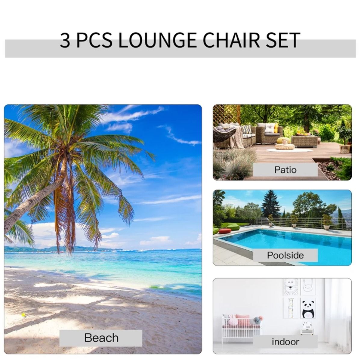 - Set includes two lounger chairs and table