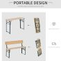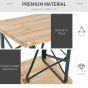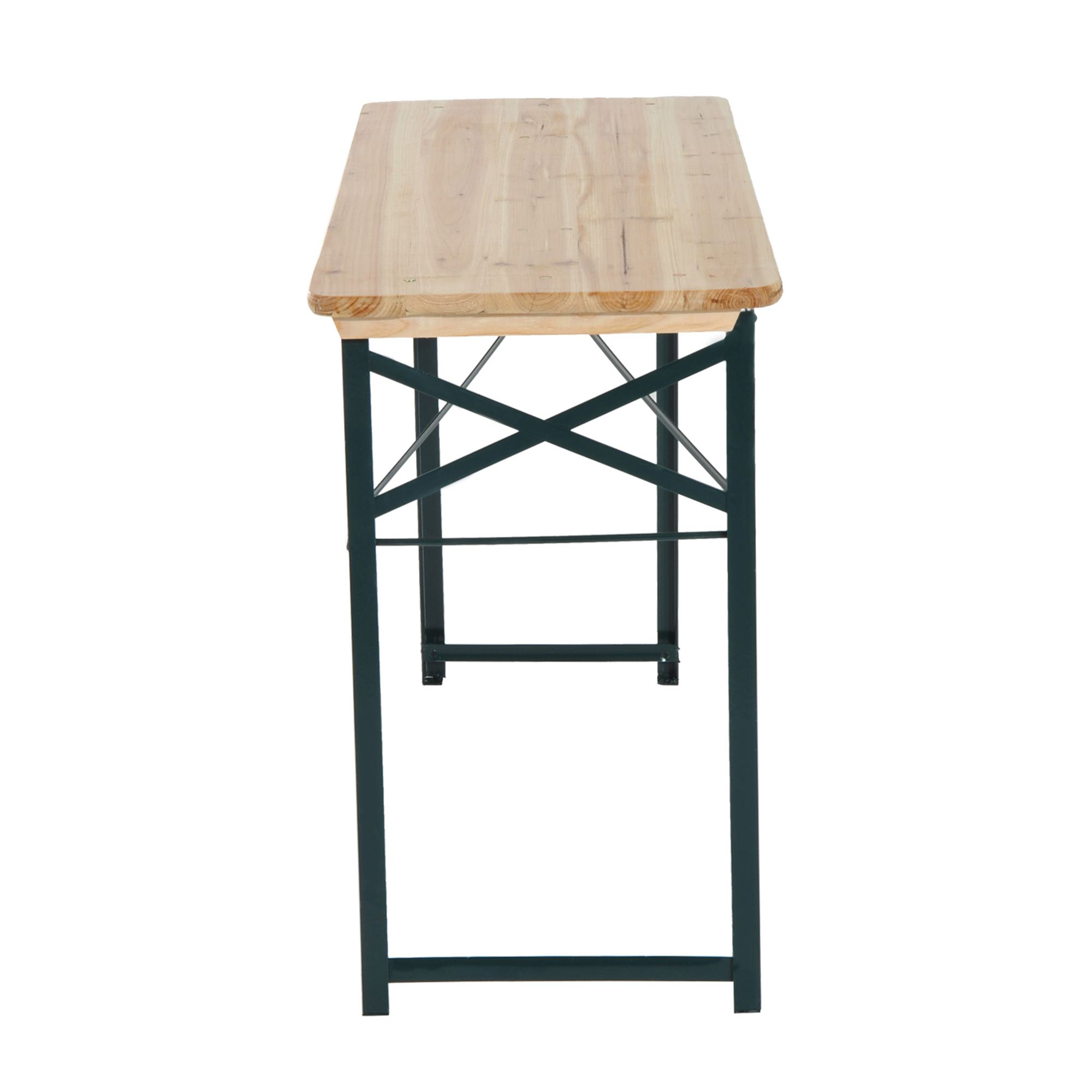 - Constructed from a metal frame with a wooden seat, backrest and table top.