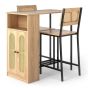 3-Piece Bar Table and Chairs Set Counter Height with PE Rattan Cabinet-Natural