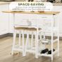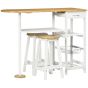 3 Piece Bar Table Set, Breakfast Bar table and Stools with Storage Shelf, Drawer, Wire Basket and Wine Rack for Kitchen, Natural and White