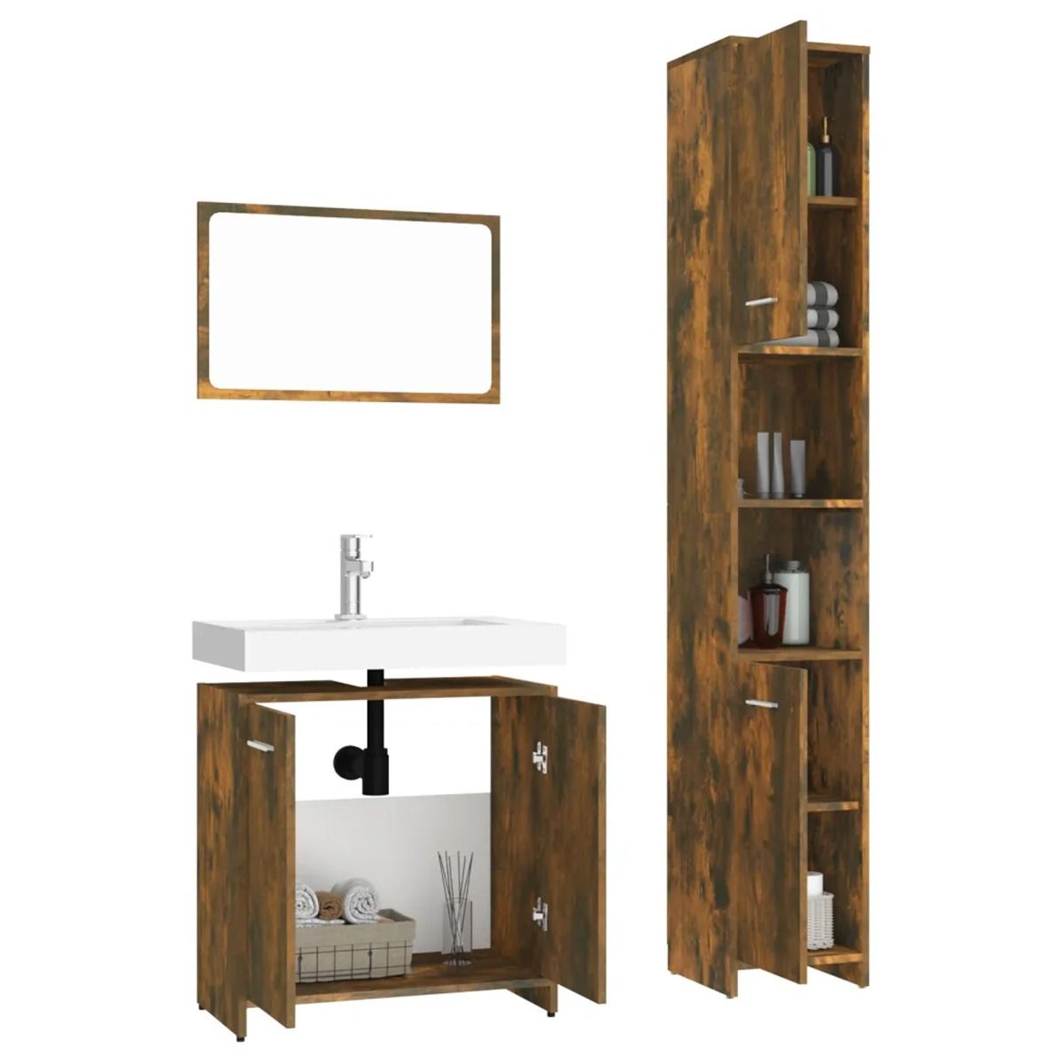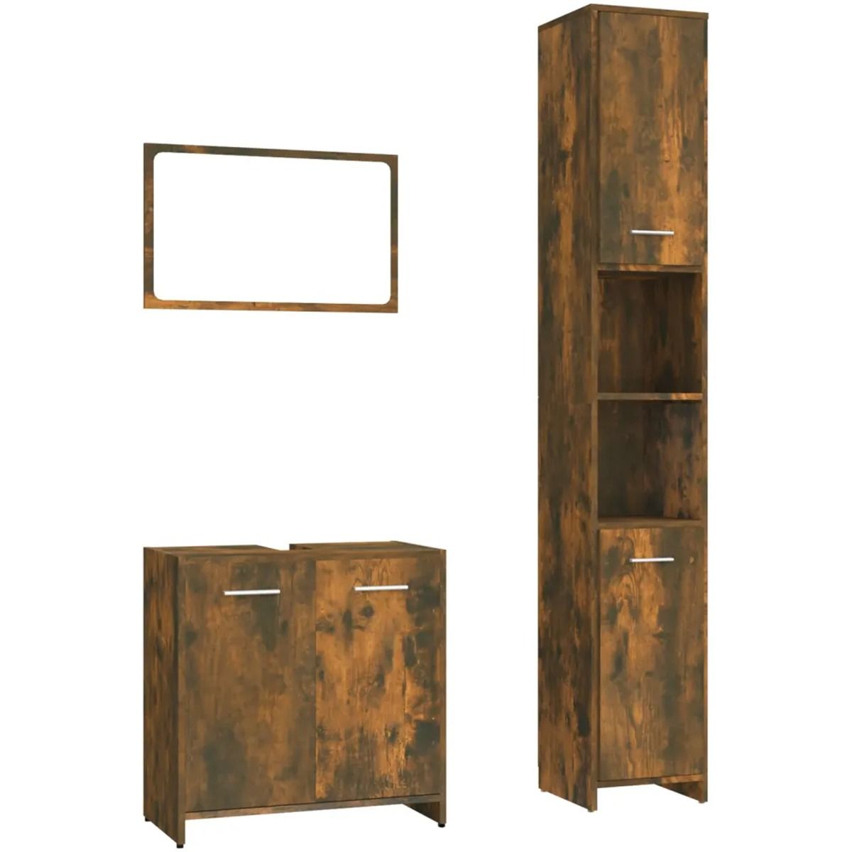 This 3-piece stylish bathroom furniture set, featuring spacious storage space, is an excellent addition to your bathroom, giving it a neat and impressive appearance! Practical material: The engineered wood is of exceptional quality with smooth surface and also features strength, stability and resistance to moisture.Ample storage: This bathroom mirror cabinet offers ample storage space for keeping your laundry essentials, toiletries and other items well organised and within reach. You can create and optimally use additional storage space in your bathroom.Utility mirror: The bathroom cabinet with mirror is perfect for your daily beauty routine. The mirror allows you to take care of your facial skin and wear your makeup too!Stylish design: The clean lines and sleek design make this bathroom sink cabinet blend into your bathroom perfectly. Warning:In order to prevent overturning, this product must be used with the wall attachment device provided. Note:Screw(s) and plug(s) for inside the wall are not included. Seek and use screw(s) and plug(s) suitable for your walls. If you are uncertain, seek professional advice. Read and follow each step of the instruction carefully.Each product comes with an assembly manual in the box for easy assembly.