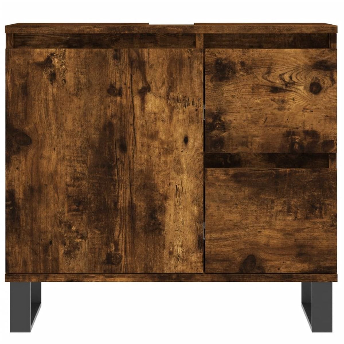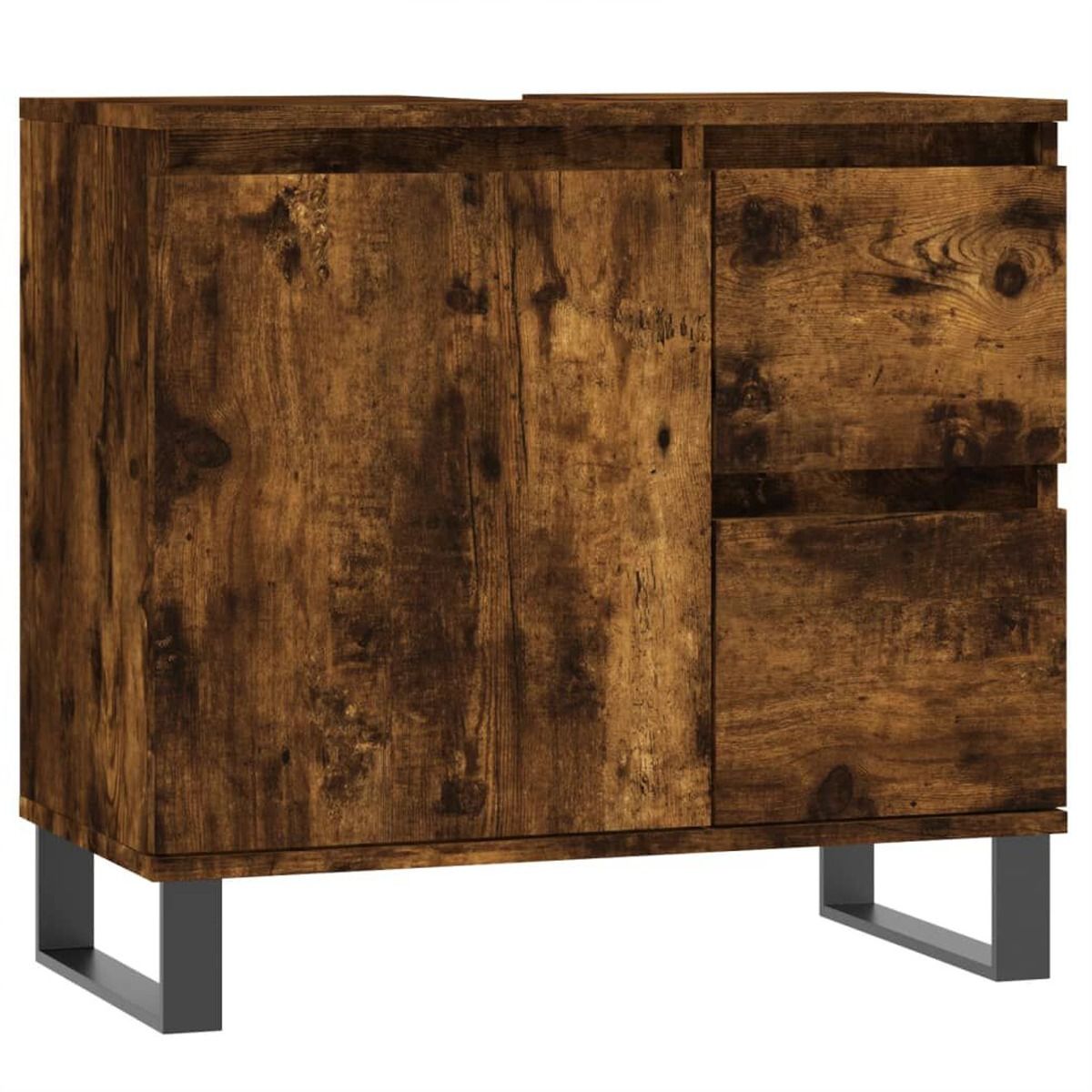 This trendy bathroom furniture set is meant to be an excellent addition to your bathroom, giving it a tidy and striking appearance! Durable material: The engineered wood is of exceptional quality with smooth surface and also features strength, stability and resistance to moisture. Iron feet: The iron feet add a modern and calm style to your interior while ensuring stability.Ample storage space: The bathroom cabinet provides various storage options and spacious space for you to store items in your bathroom. Practical design: The top of the bathroom sink cabinet is ideal for placing the sink. Warning:To prevent it being overturned, this product must be used with the provided wall attachment device. Good to know:The sink is not included in the delivery.Screws and plugs for inside the wall are not included. We advise to find and use screws and plugs suitable specifically for your walls. If you're not sure, you can consult with a professional. Please read and follow each step of the instructions.