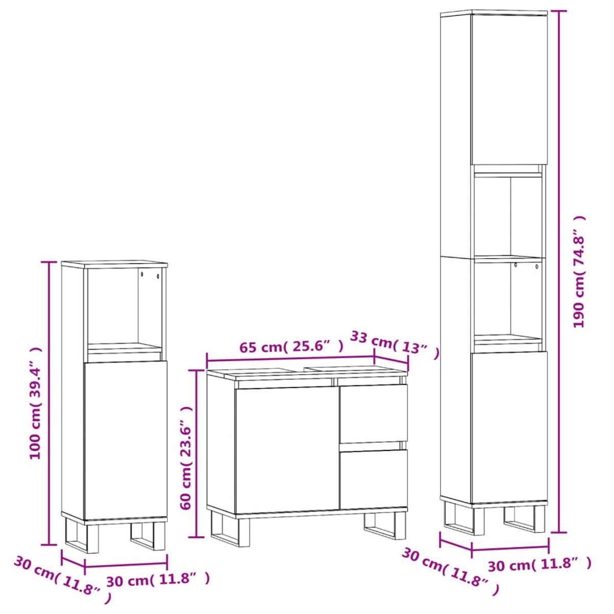 - Bathroom cabinet dimensions (low): 30 x 30 x 100 cm (L x W x H)