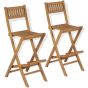 This stylish folding wooden bar set with a stylish design will make a great addition to your garden. Constructed from extremely durable teak hard wood, this piece of teak furniture has been seasoned, kiln dried and then fine sanded to give a very smooth appearance. Teak wood is known for its exceptional strength and weather resistance, making it far more suitable for garden furniture than any other kind of wood. Teak wood is the perfect choice if you want to purchase a long lasting piece of garden furniture. The tabletop has a parasol hole, so you can enjoy the summer breeze in the shade. The bottle holder and removable shelves make it easy to store food, drinks, or other supplies and necessities of varying sizes in the bar table. The stools have backrests and footrests that add to their seating comfort as well as their iconic design. This bar set can be folded to save space when not in use. Assembly is easy. Delivery includes 1 bar table and 2 bar stools.