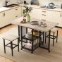 3-Piece Foldable Dining Table Set with Lockable Wheels for Small Place-Grey