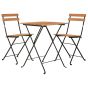 3 Piece Folding Bistro Set Solid Wood Teak and Steel