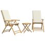 3 Piece Folding Bistro set with Cream White Cushions Bamboo - vid-3208937