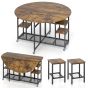 3-Piece Folding Dining Table Set with Large Tabletop and Storage Racks-Rustic Brown