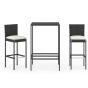 3 Piece Garden Bar Set with Cushions Poly Rattan Black