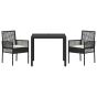 3 Piece Garden Dining Set with Cushions Black Poly Rattan