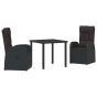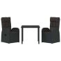 3 Piece Garden Dining Set with Cushions Black Poly Rattan