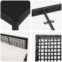 This garden dining set is all about modern style and comfort. It's the perfect fit for your outdoor dining needs, featuring two lovely chairs and a square table in a smart black and cream mix, which makes it great for any balcony or patio. This garden dining set is spot on for outdoor use, providing a stylish and inviting space for family meals or chilling with mates, creating a delightful environment for relaxation. The cushions are soft and removable with a zipper, making them easy to keep clean and fresh all year round. With its simple yet elegant design, this set fits right in with modern or traditional decor, allowing you to enjoy your outdoor activities in style. The strong steel frame ensures it can hold up to 120 kg, ideal for patios, balconies, or gardens.