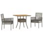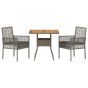 3 Piece Garden Dining Set with Cushions Grey Poly Rattan