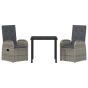 3 Piece Garden Dining Set with Cushions - Grey Poly Rattan